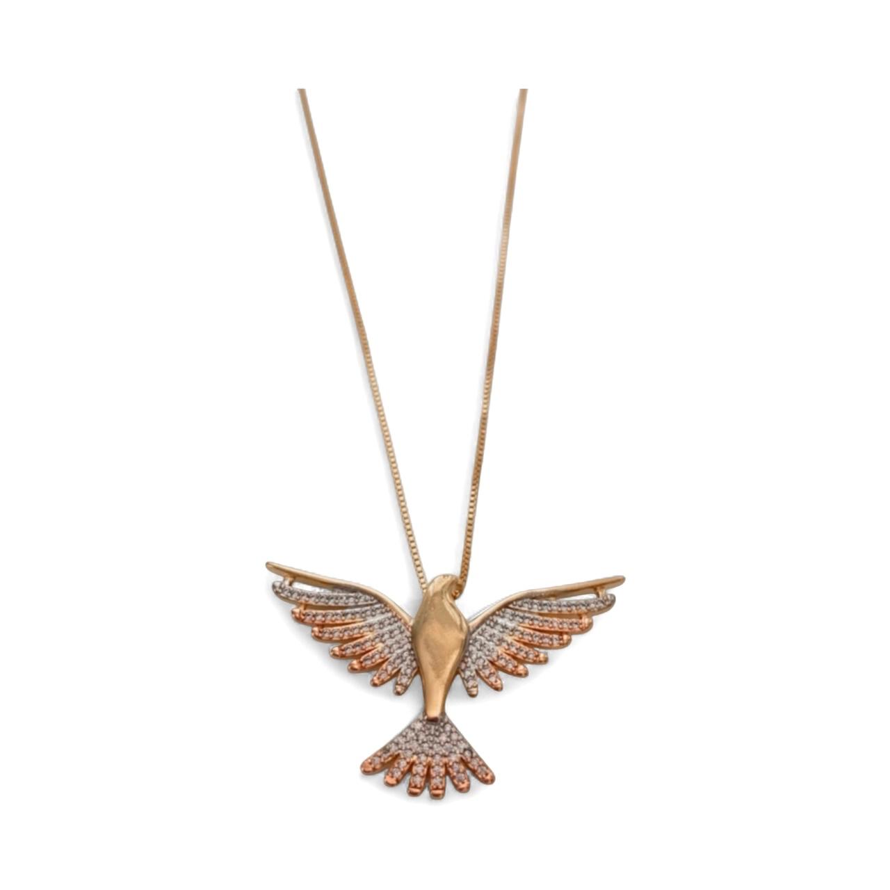 Colar de corrente veneziana banhada a Ouro 18K, com um lindo pingente Espírito Santo cravejado com zirconias brancas e com 3 banhos -Ouro 18K, Ródio Branco e Ouro Rose