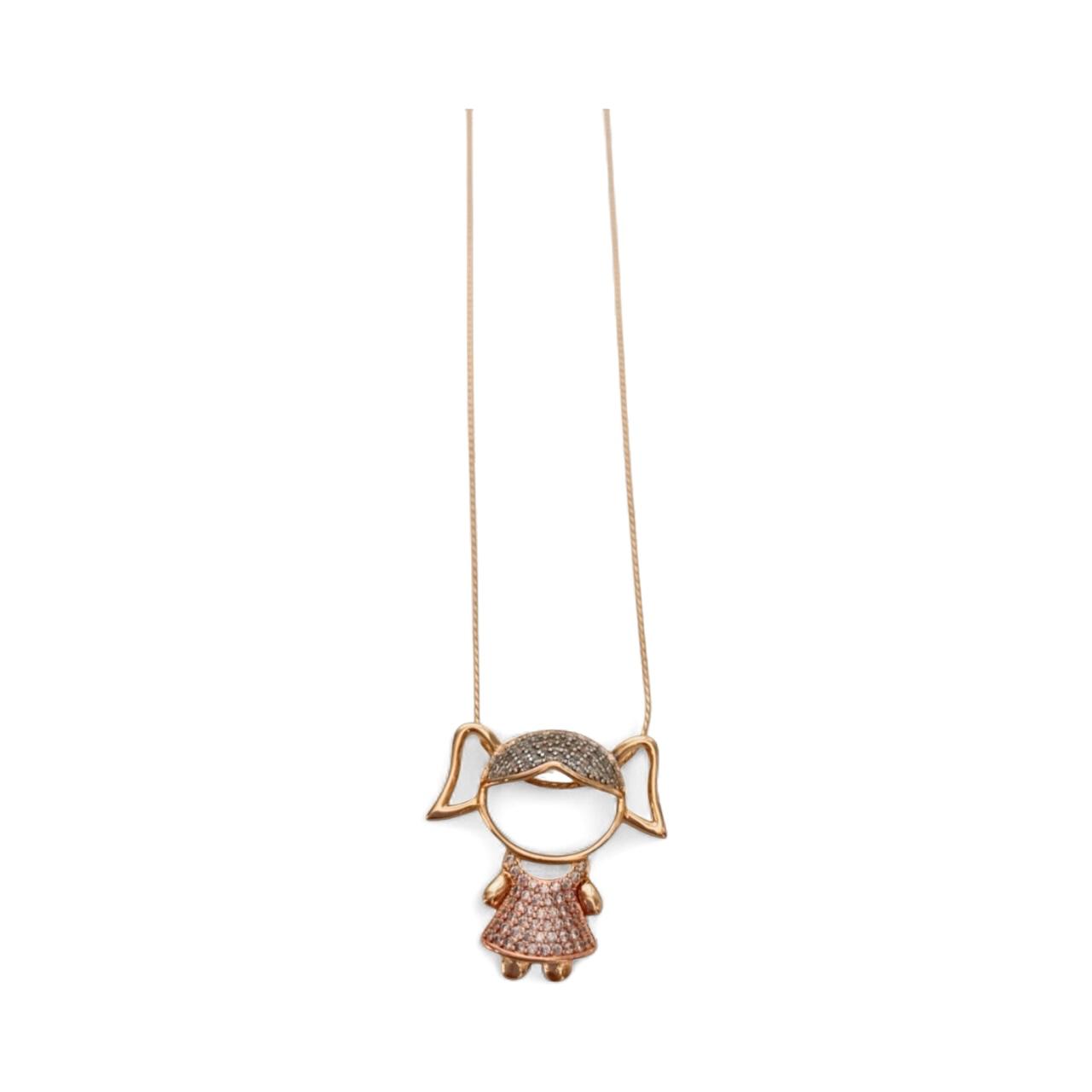 Lindo Colar de corrente veneziana com pingente de menina cravejado com zirconias brancas e 3 banhos: Ródio Branco, Ouro 18K e Ouro Rosê